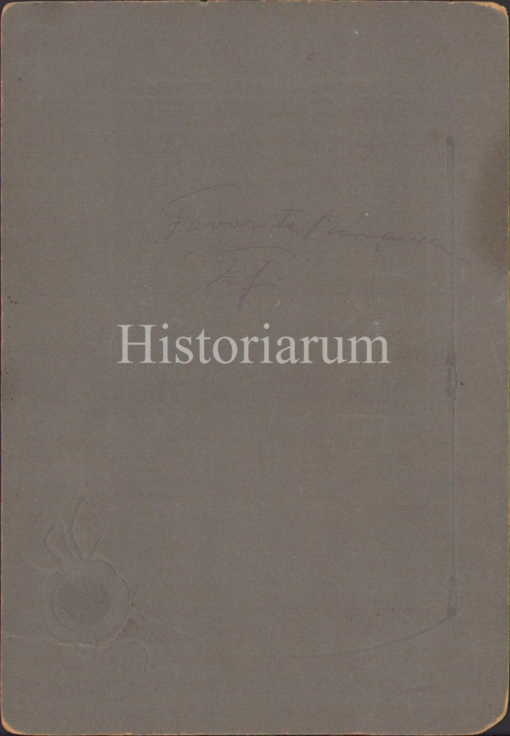 Pe spatele fotografiei, notă de mână cu creion „Favorita Romanescu Fifi”.