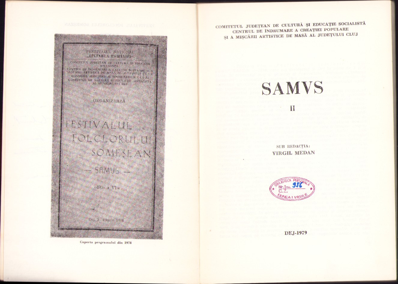 Festivalul folclorului someșan, Samus, II, 1978, cu dedicația redactorului volumului, Virgil Medan, Dej.