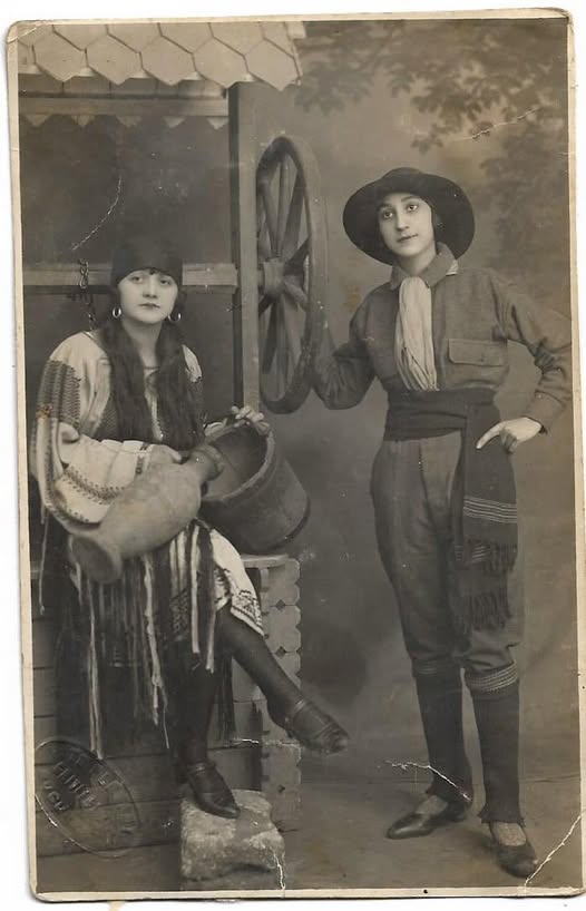 Fete în uniformă de cercetaș și în port popular, studio Elegant, București.