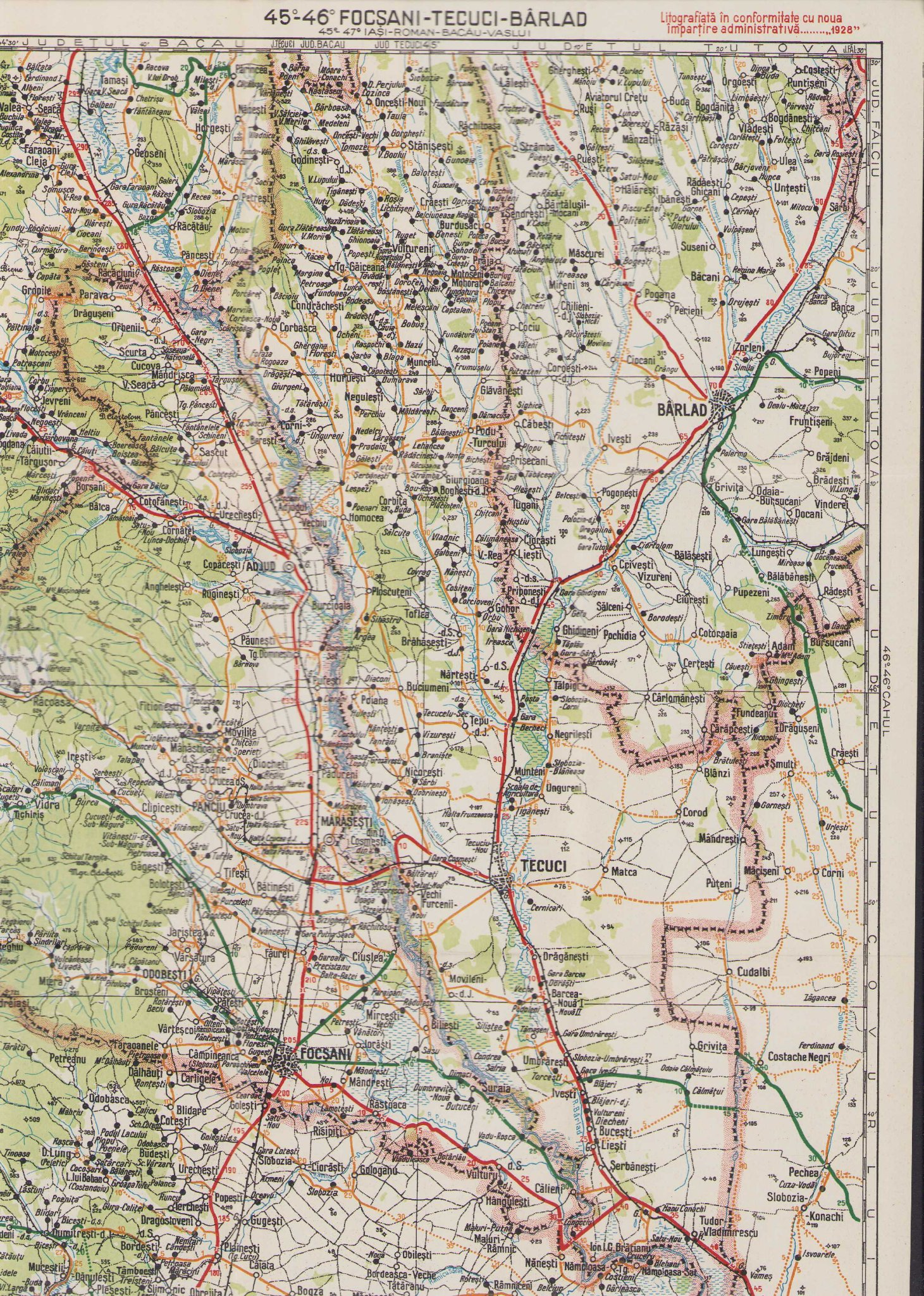 Focșani, Tecuci, Bârlad, harta nr 29, 1936, Ghidul turistului și automobilistului.