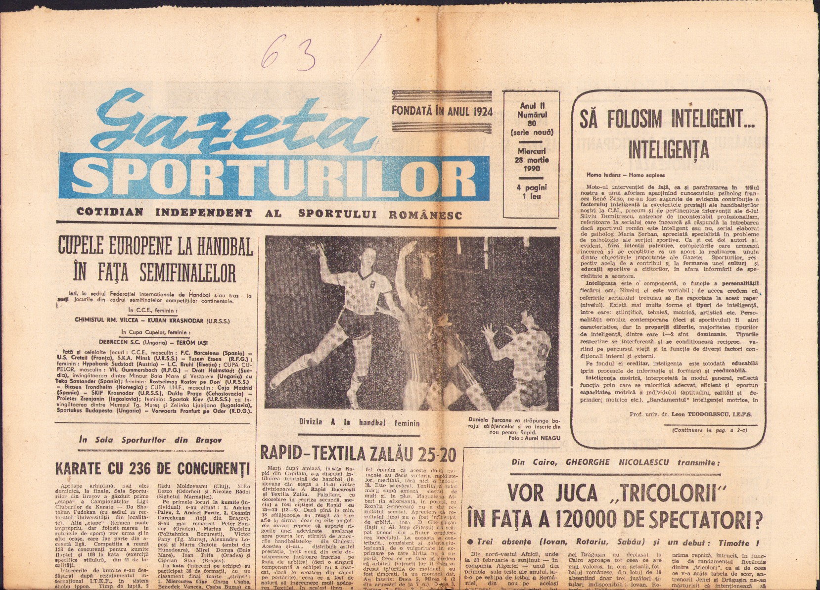 Cantitate Gazeta Sporturilor, 28 martie 1990