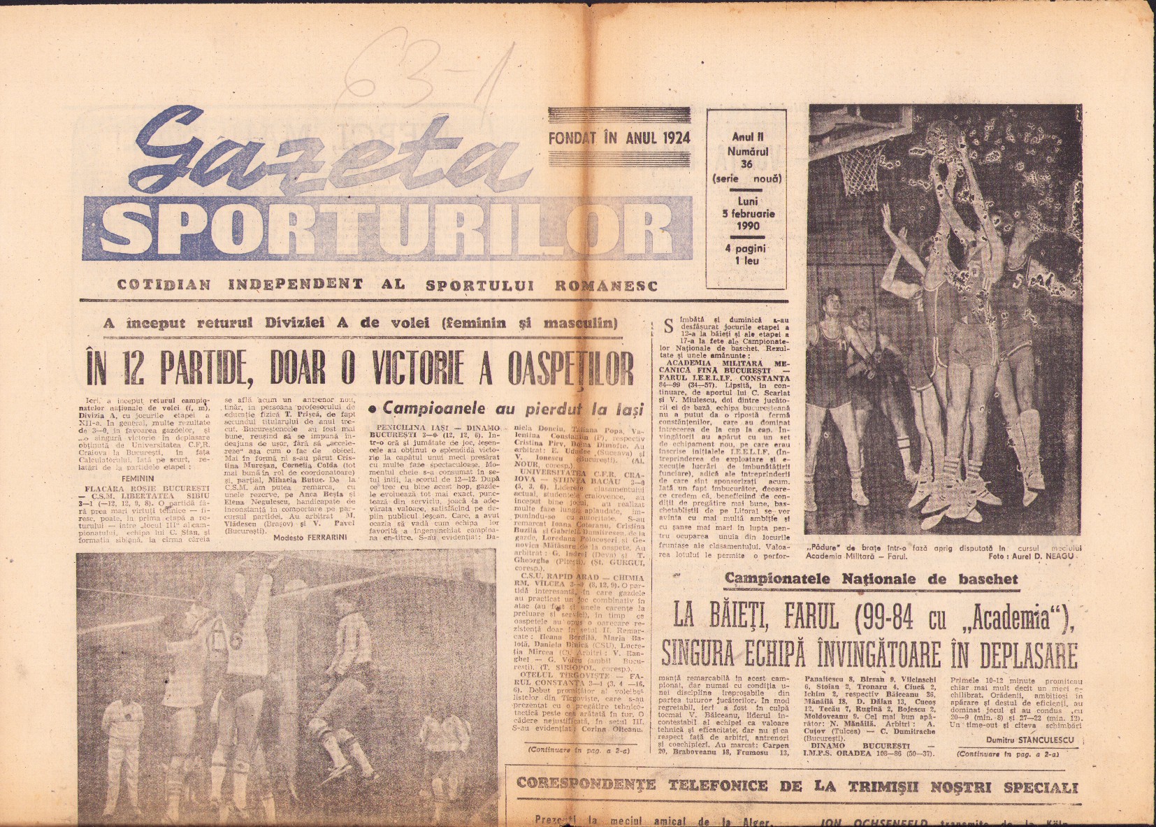 Cantitate Gazeta Sporturilor, 5 februarie 1990