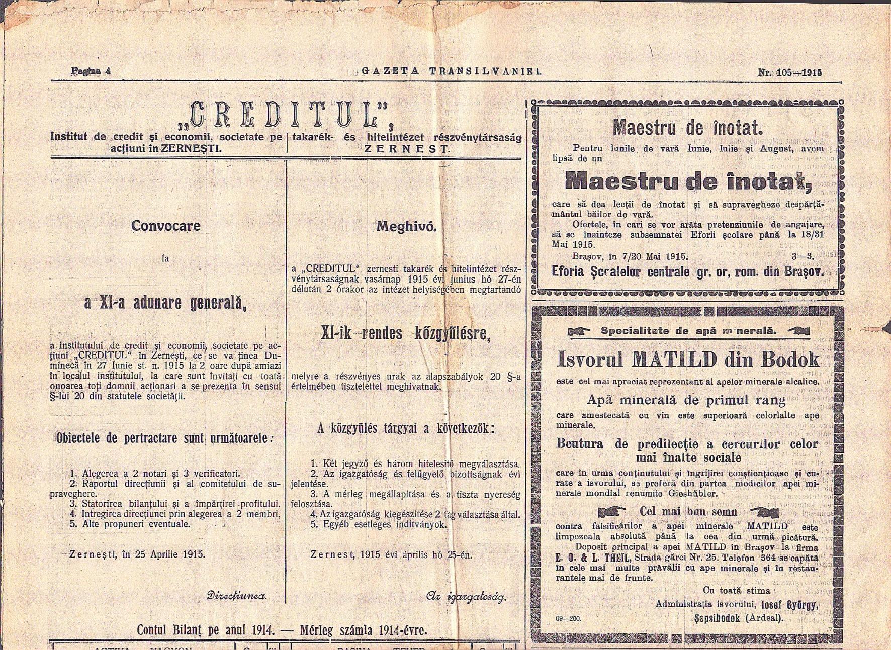 Gazeta Transilvaniei, 105/1915, Brașov.