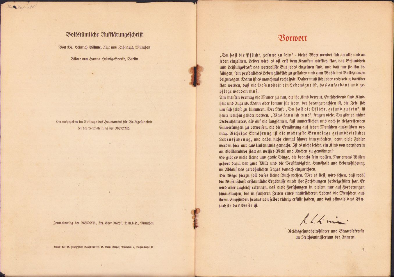 Gesund durch richtige Kost von Heinrich Böhme, Volkstümliche Aufklärungsschrift, Editura Centrală a NSDAP, 1941, München.