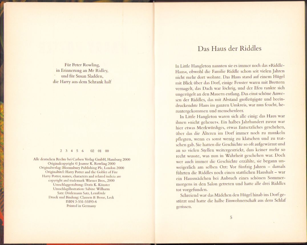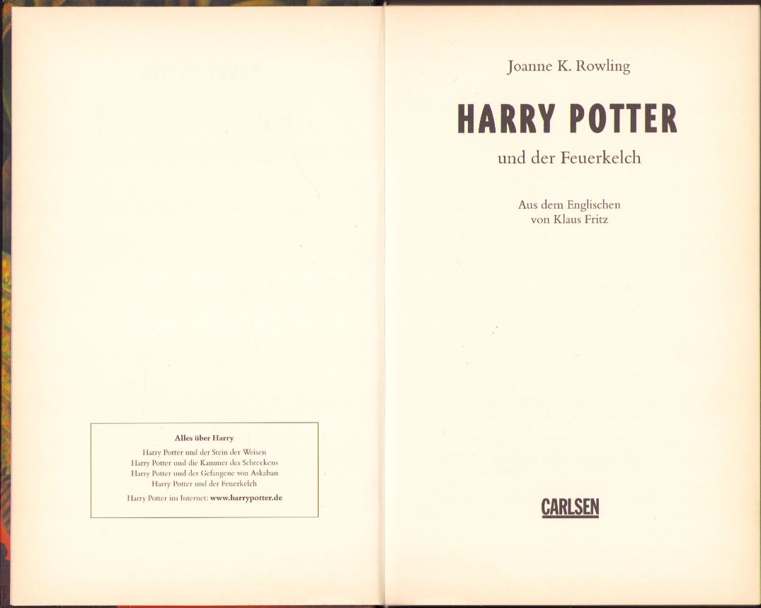 Harry Potter und der Feuerkelch von Joanne K Rowling, 2000.