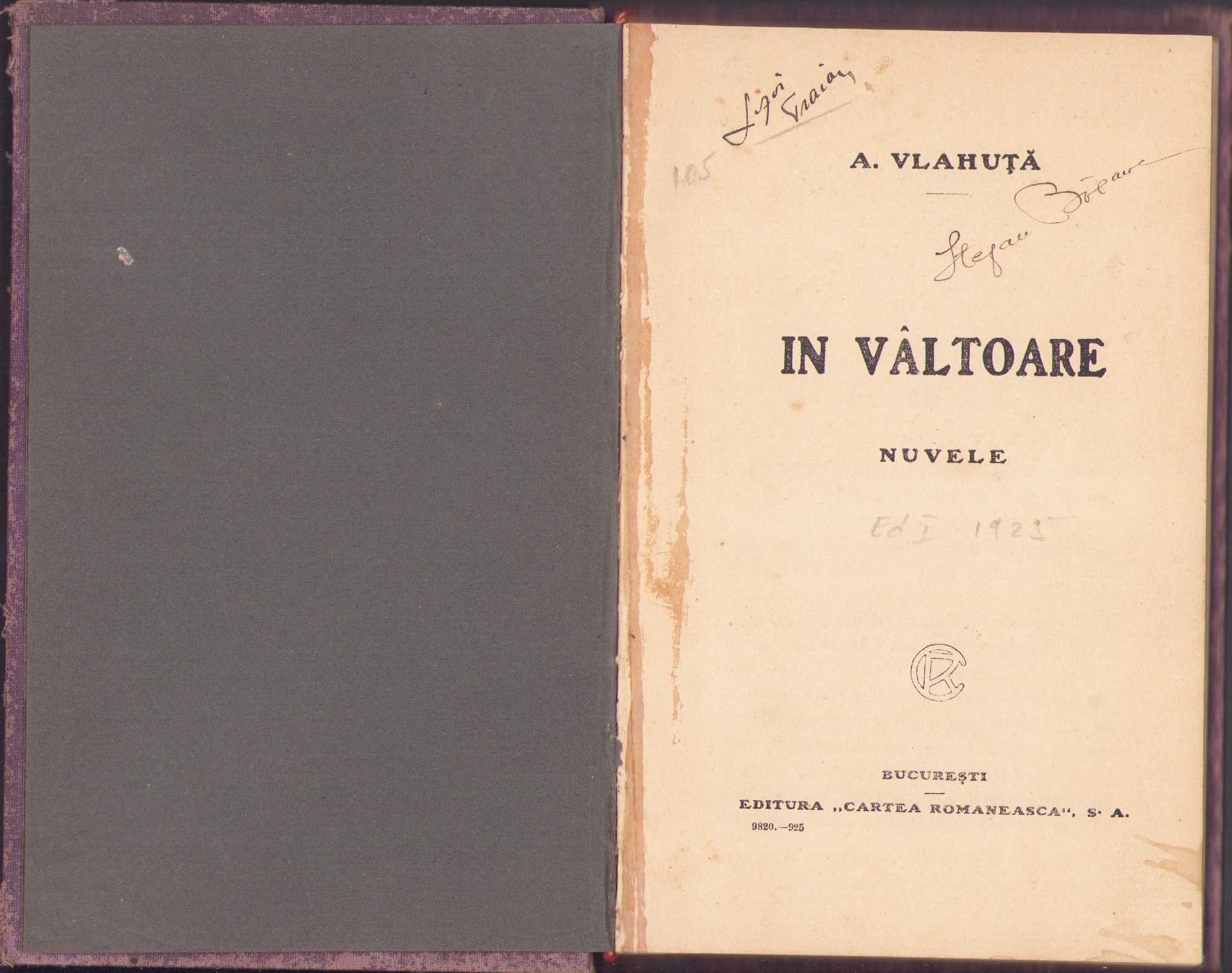 În vâltoare, Nuvele de Alexandru Vlahuță, 1925, ediția I.