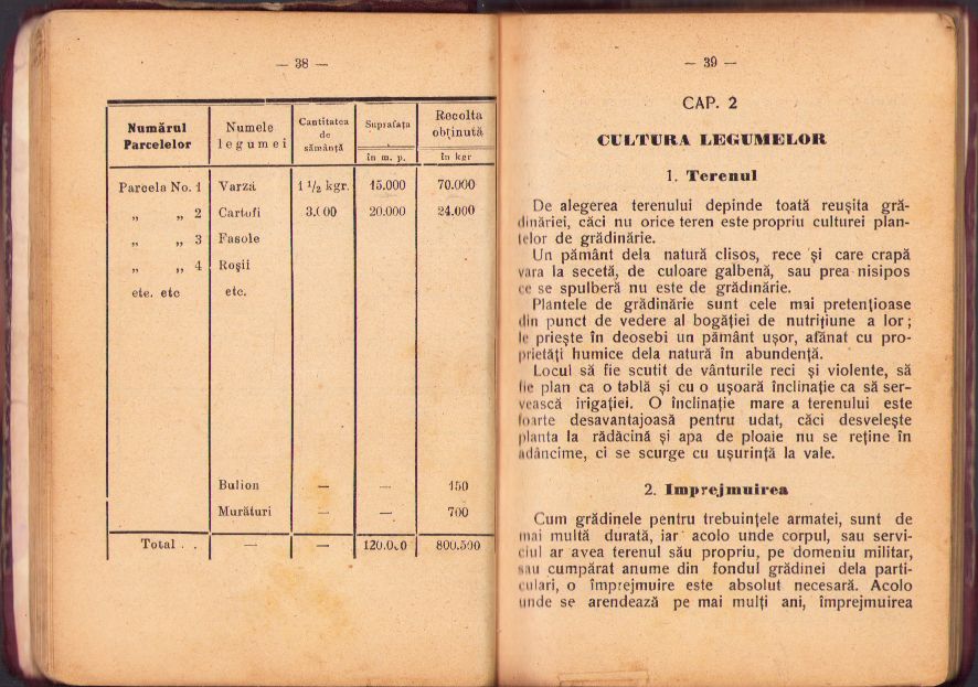 Instrucțiuni relative la contabilitatea și administrația grădinilor de zarzavat, cultura legumelor, uscarea și conservarea lor, cultura plantelor furajere, 1930. Ministerul Armatei, Direcția Intendenței.