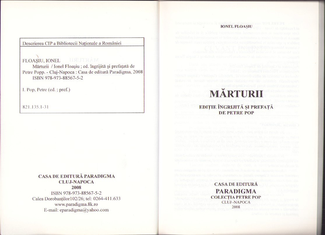 Ioan Floașiu, Mărturii, 2008, Cluj-Napoca.