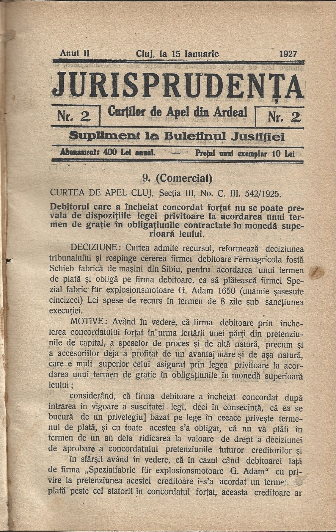 Jurisprudența Curților de Apel din Ardeal, 1927, Cluj, colegat de 47 numere.