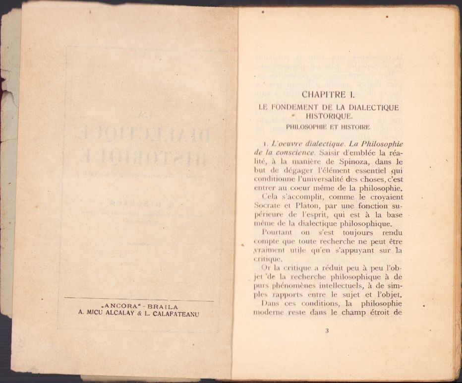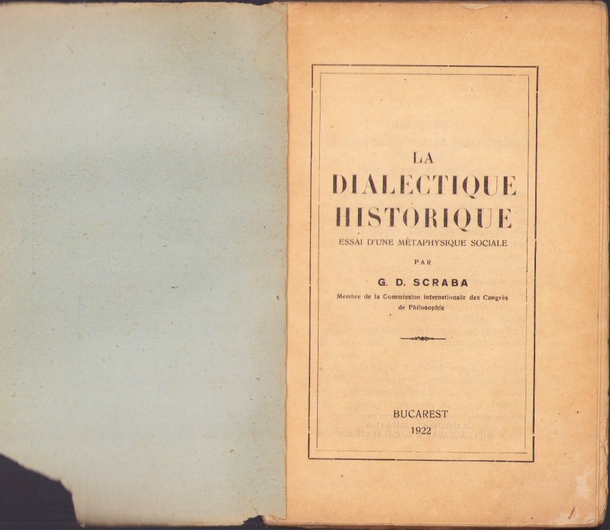 La dialectique historique, Essai d’une métaphysique sociale de Gheorghe D Scraba, 1922, București, cu semnătura olografă a autorului și donația sa pentru Liga pentru Unitatea Culturală a tuturor Românilor.