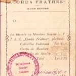 Legitimație de membru senior Corda Fratres semnată olograf de Lucian Bolcaș