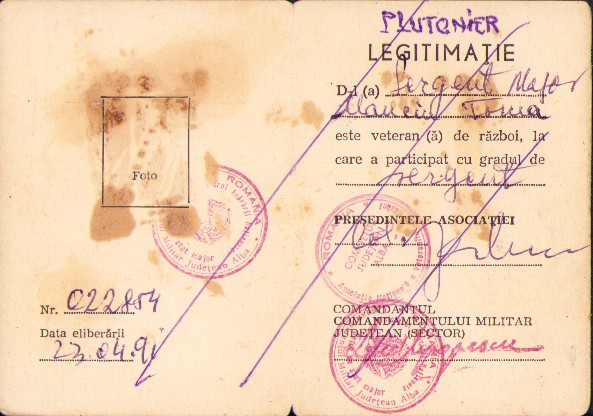 Legitimație veteran de război român din Al Doilea Război Mondial, 1991.