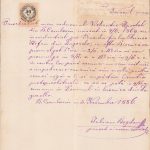Cu ștampila model 1866 a parohiei din Comloșu Mare și timbru fiscal de 50 creițari.