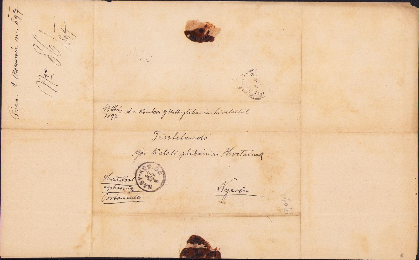 Documentul poartă ștampila parohiei greco-catolice Comloșu Mare, circulat poștal, cu sigiliul parohiei parțial păstrat în ceară roșie.