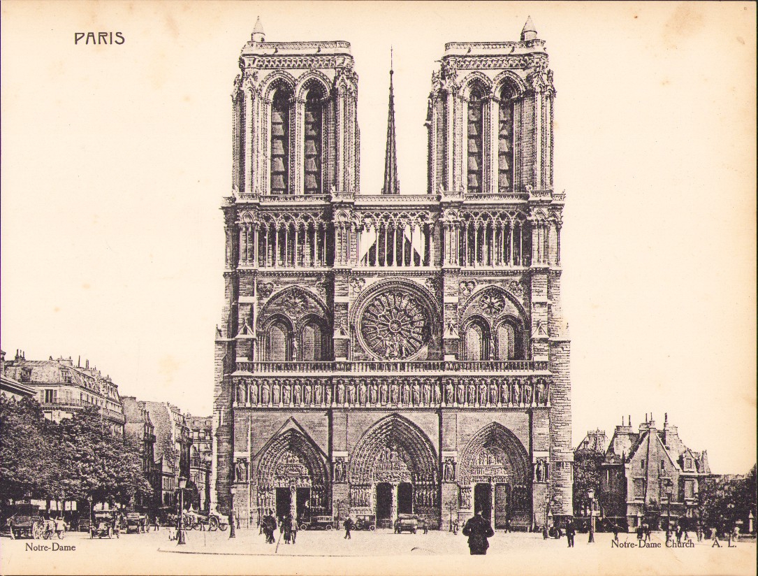 Litografie Notre Dame, cca începutul secolului al XX-lea.