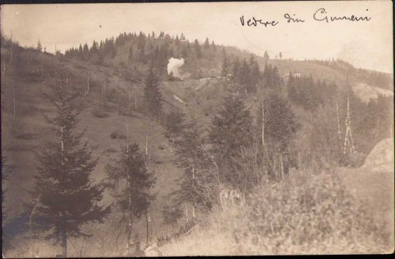 Locomotivă cu aburi la Ciumani, județul Harghita, 1927.