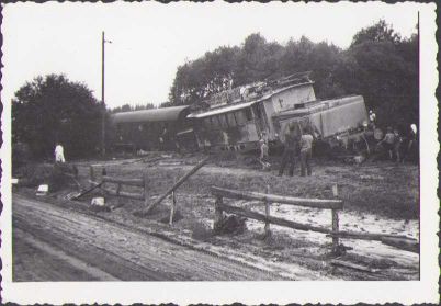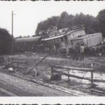 Locomotivă deraiată, fotografie cca anii 1960.