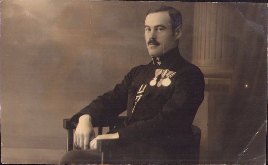 Locotenent austro-ungar decorat cu Crucea de Fier germană și cu trei medalii austro-ungare pentru vitejie, 1917, Cluj.