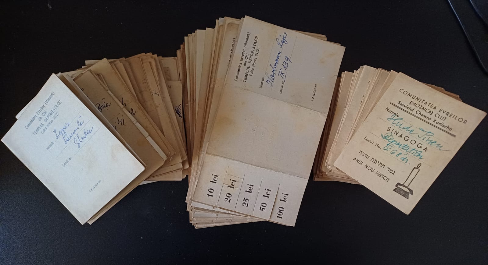 Lot de 169 carnete de donație (fiecare scris cu numele unui membru al comunității) de Izkor, Comunitatea Evreilor, Templul Deportaților, Cluj, anii 1950.