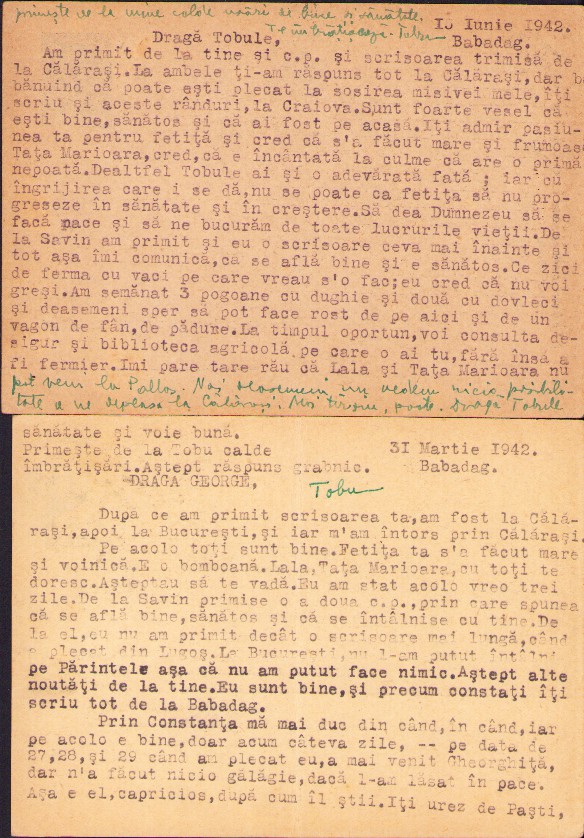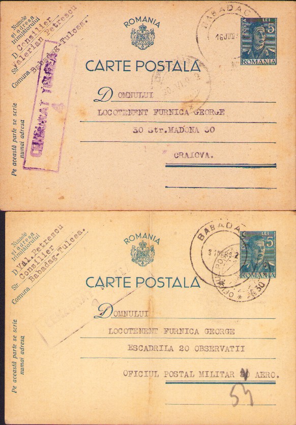 Lot de 2 cărți poștale cu ștampila Cenzurat Tulcea, 1942.