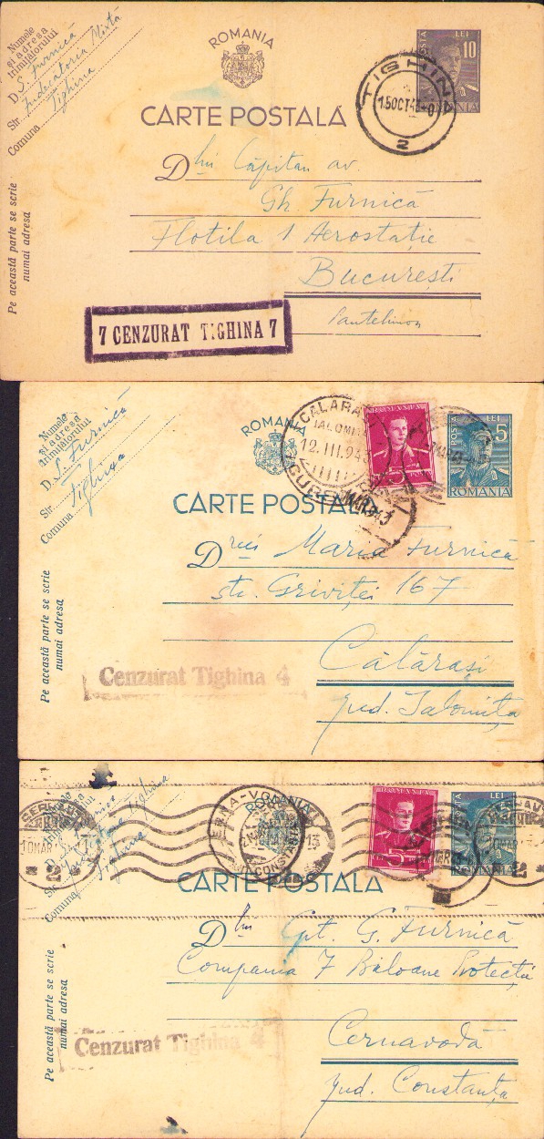 Lot de 3 cărți poștale cu ștampila Cenzurat Tighina, 1943.