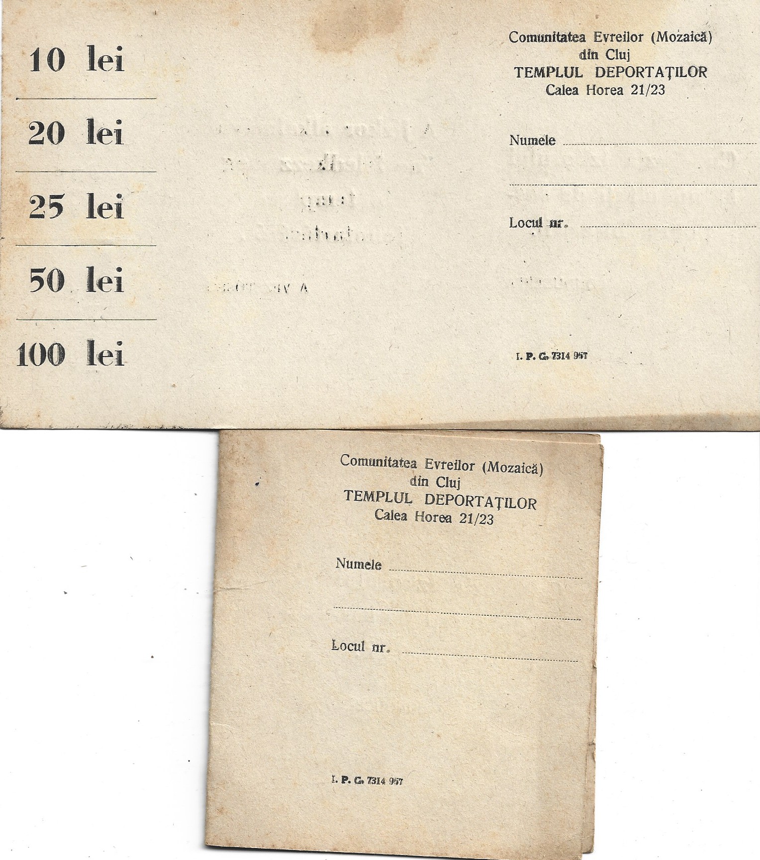 Lot de 37 carnete de donație (în alb) de Izkor, Comunitatea Evreilor, Templul Deportaților, Cluj.