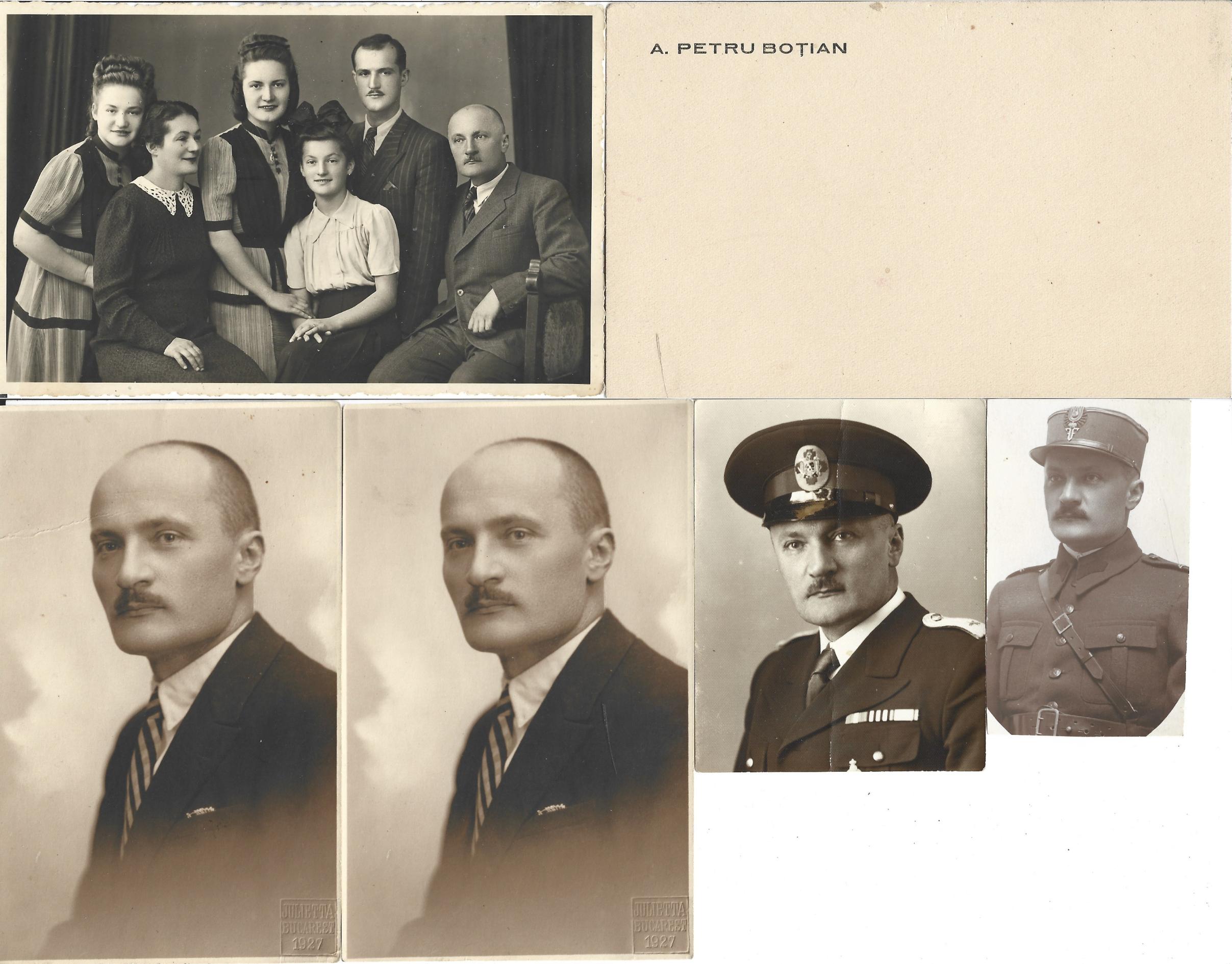 Într-o fotografie este în uniformă de sublocotenent al armatei române din anii 1920, iar în alta în uniforma Frontului Renașterii Naționale. Într-una din poze apare alături de familie, studio George Heiter, Reghin. Două poze sunt studio Julietta, București, 1927
