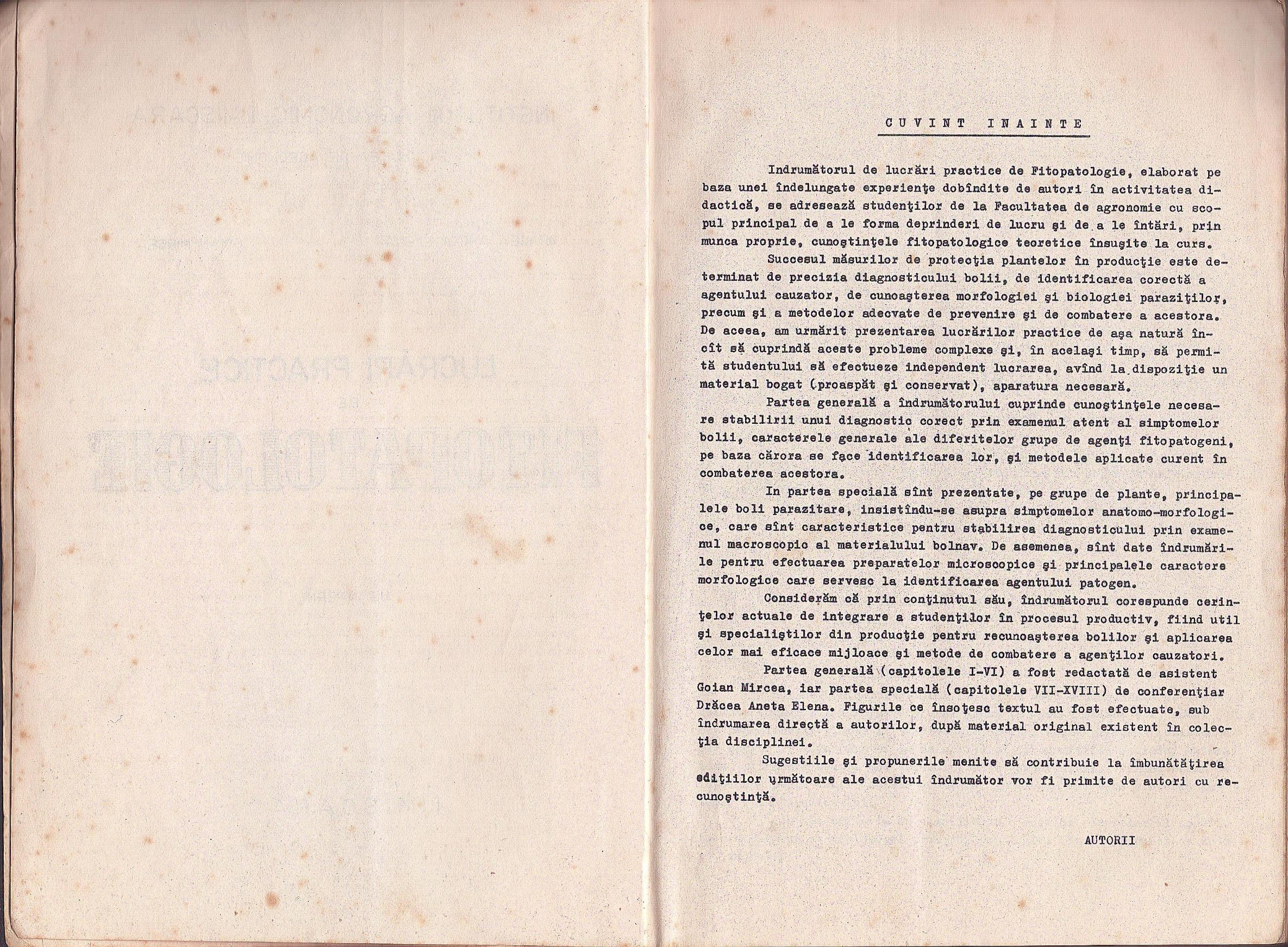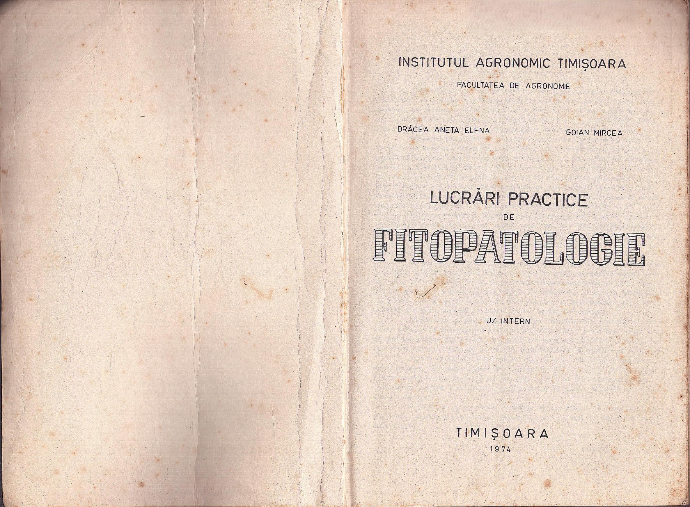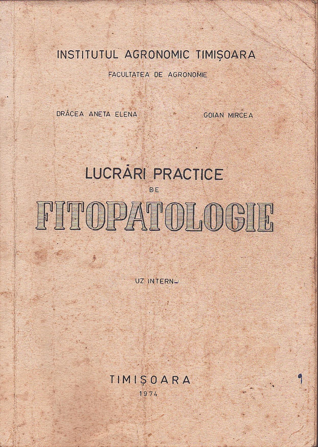 Lucrări practice de fitopatologie de Dracea Aneta Elena și Goian Mircea, 1974, Institutul Agronomic Timișoara.