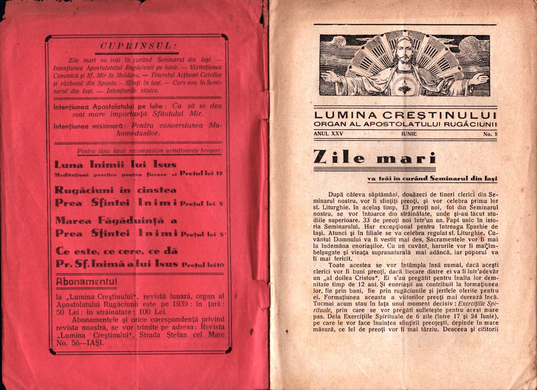 Lumina creștinului, organ al Apostolatului Rugăciunii, iunie 1939, Iași.