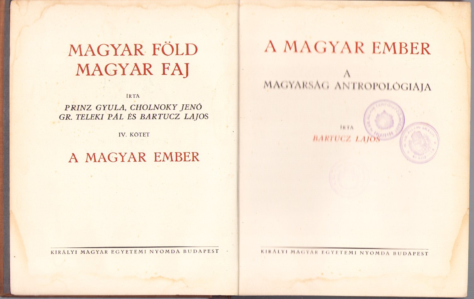 Magyar föld, magyar faj, IV, A magyar ember, A magyarság antropológiája irta Bartucz Lajos, ediție interbelică.