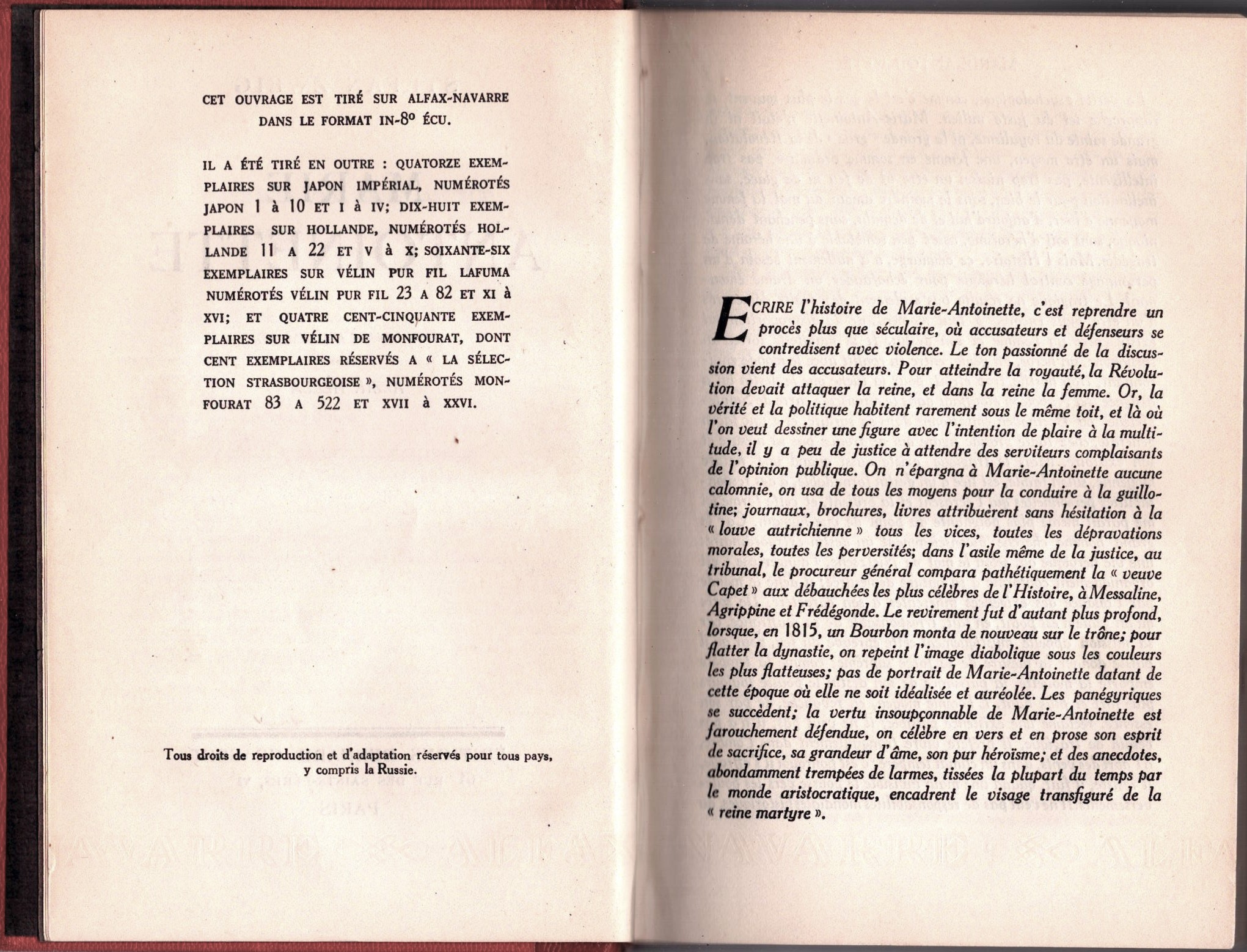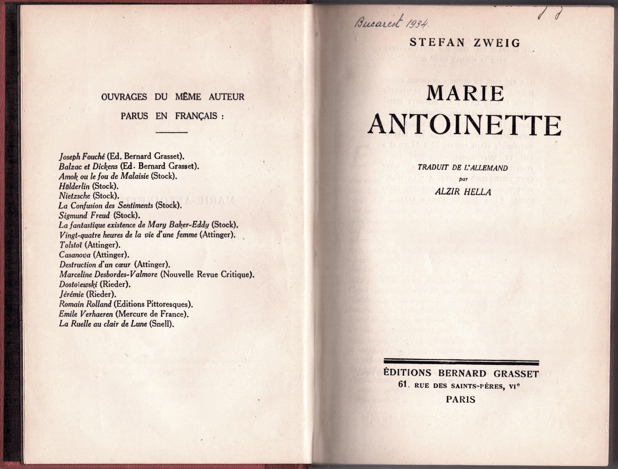 Marie Antoinette par Stefan Zweig, 1934, Paris.