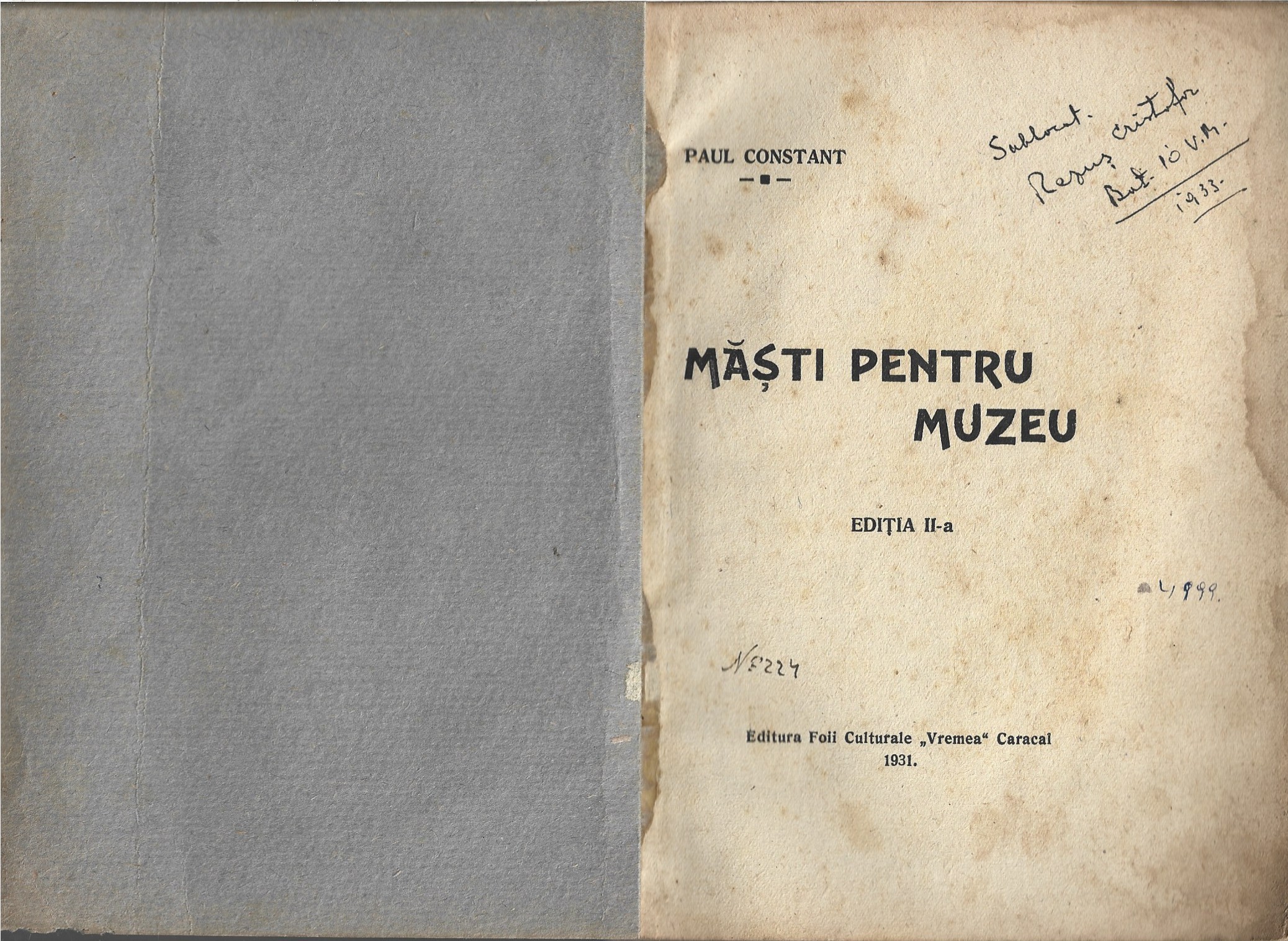 Măști pentru muzeu de Paul Constant, 1931, Caracal.