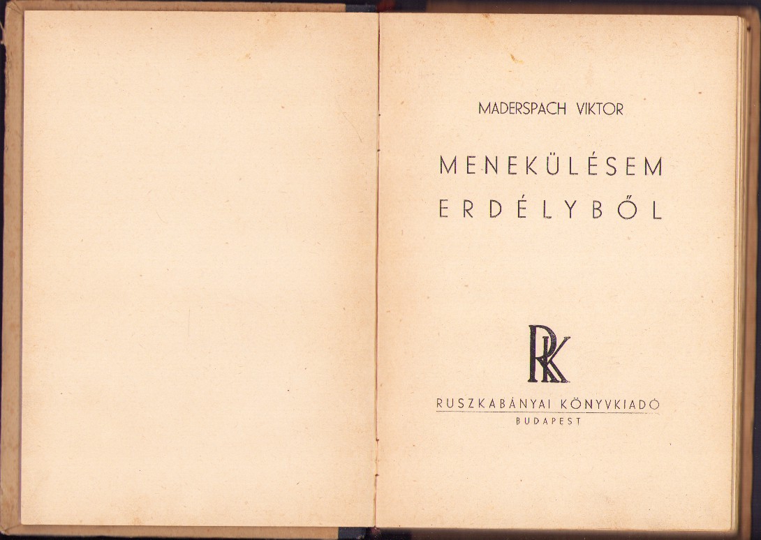 Menekülésem Erdélyből irta Maderspach Viktor.