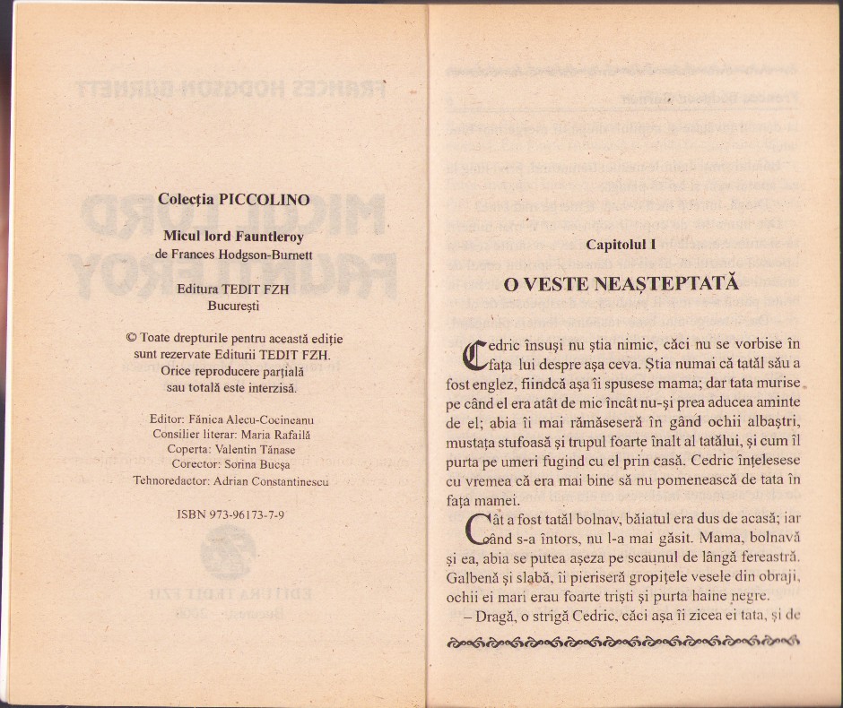 Micul lord de Frances Hodgson Burnett, 2000.