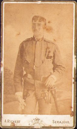 Militar austro-ungar cu șnur de specialist și baionetă, studio Rickert, Sarajevo
