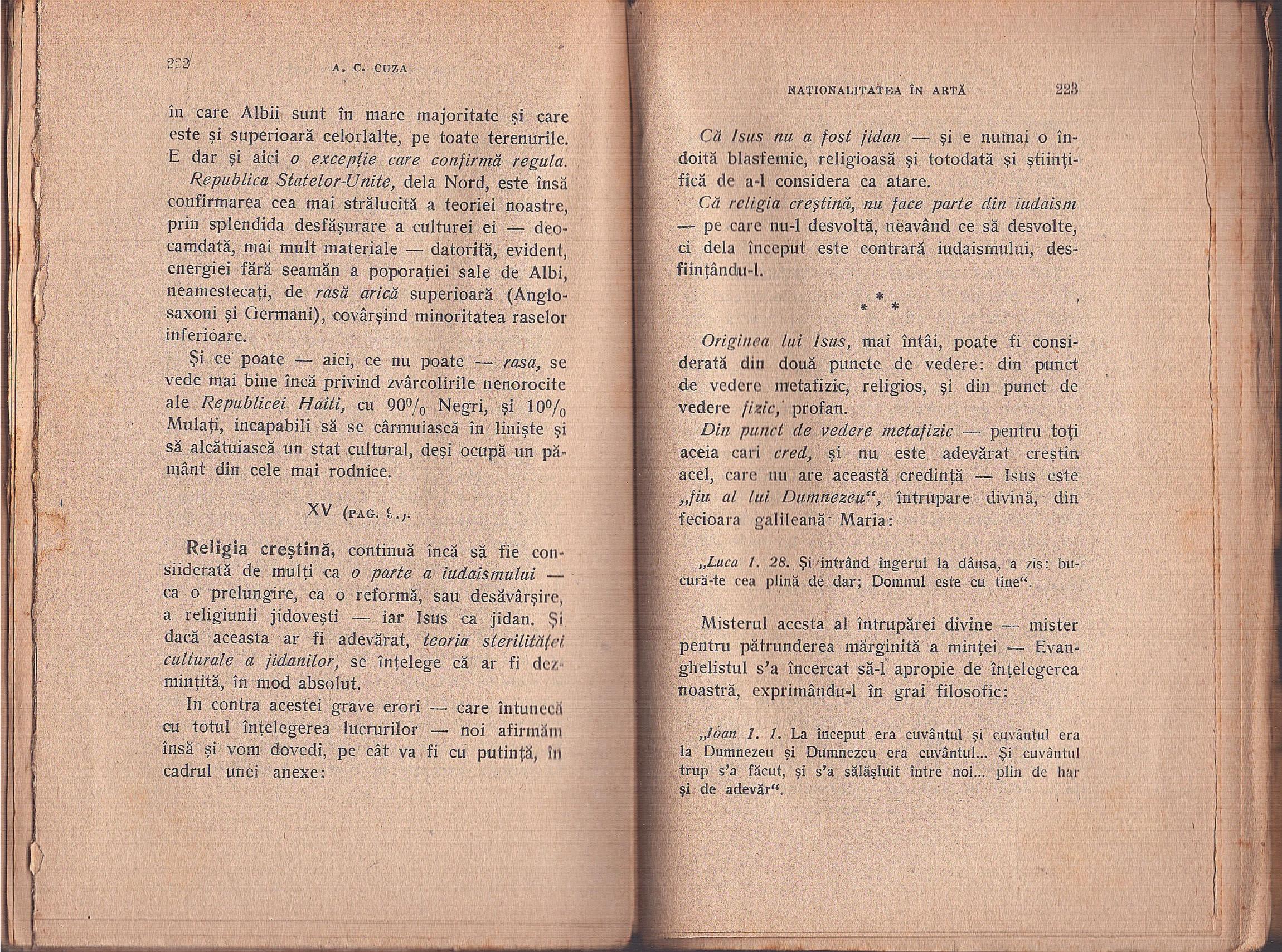 Naționalitatea în artă, principii, fapte, concluzii, introducere în doctrina naționalistă-creștină de A C Cuza, 1927.