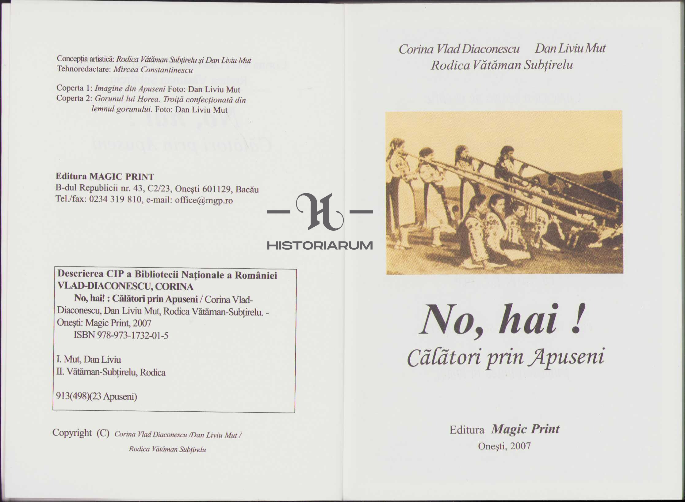 No, hai! Călători prin Apuseni de Corina Vlad Diaconescu, Dan Liviu Mut și Rodica Vătăman Subțirelu, 2007, Editura Magic Print, Onești.