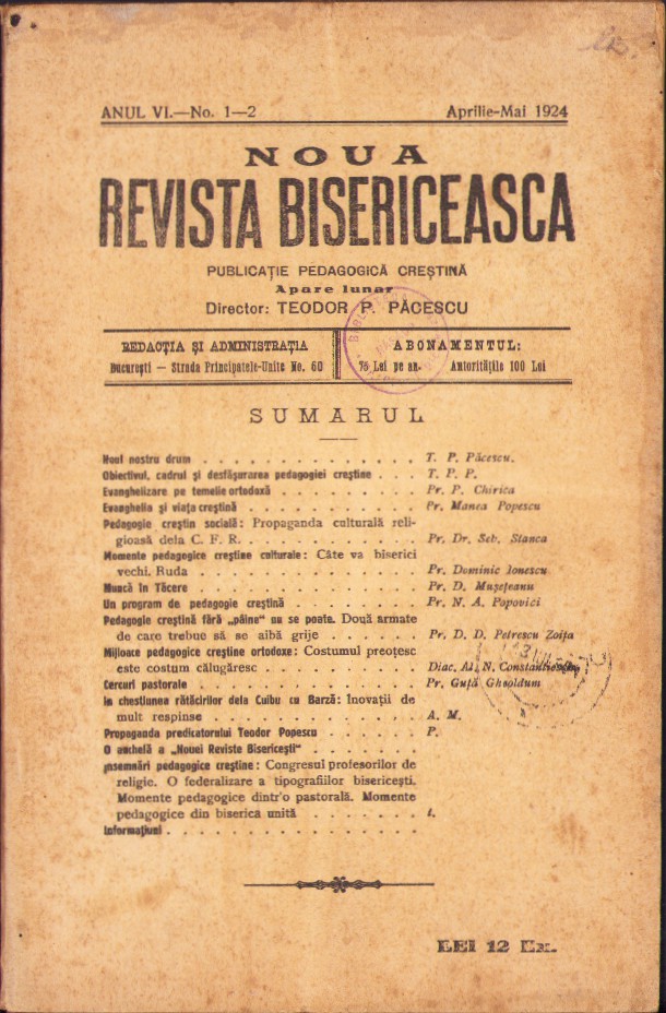 Noua Revistă Bisericească, 1-2/1924, Tipografia cărților bisericești, București
