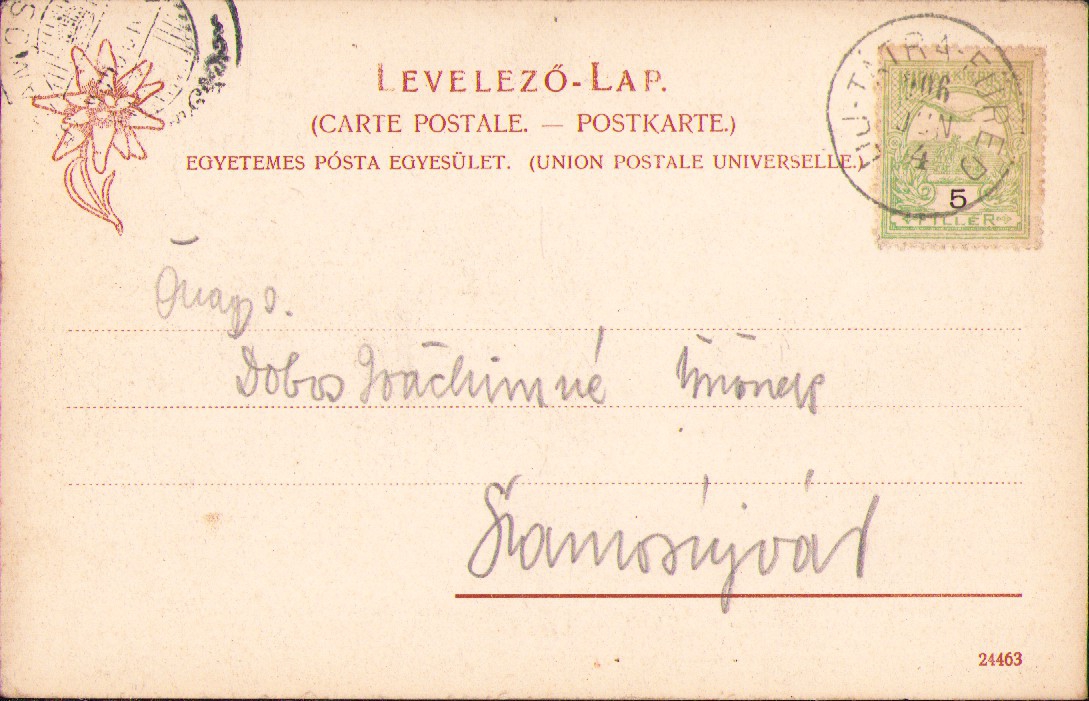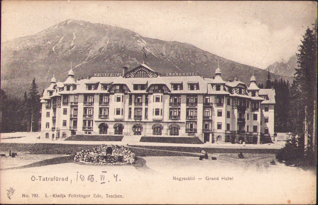 Ó-Tatrafüred Nagyszálló, carte poștală, circulată Gherla.