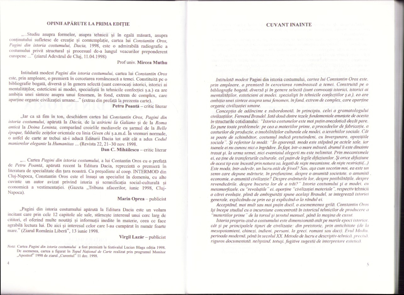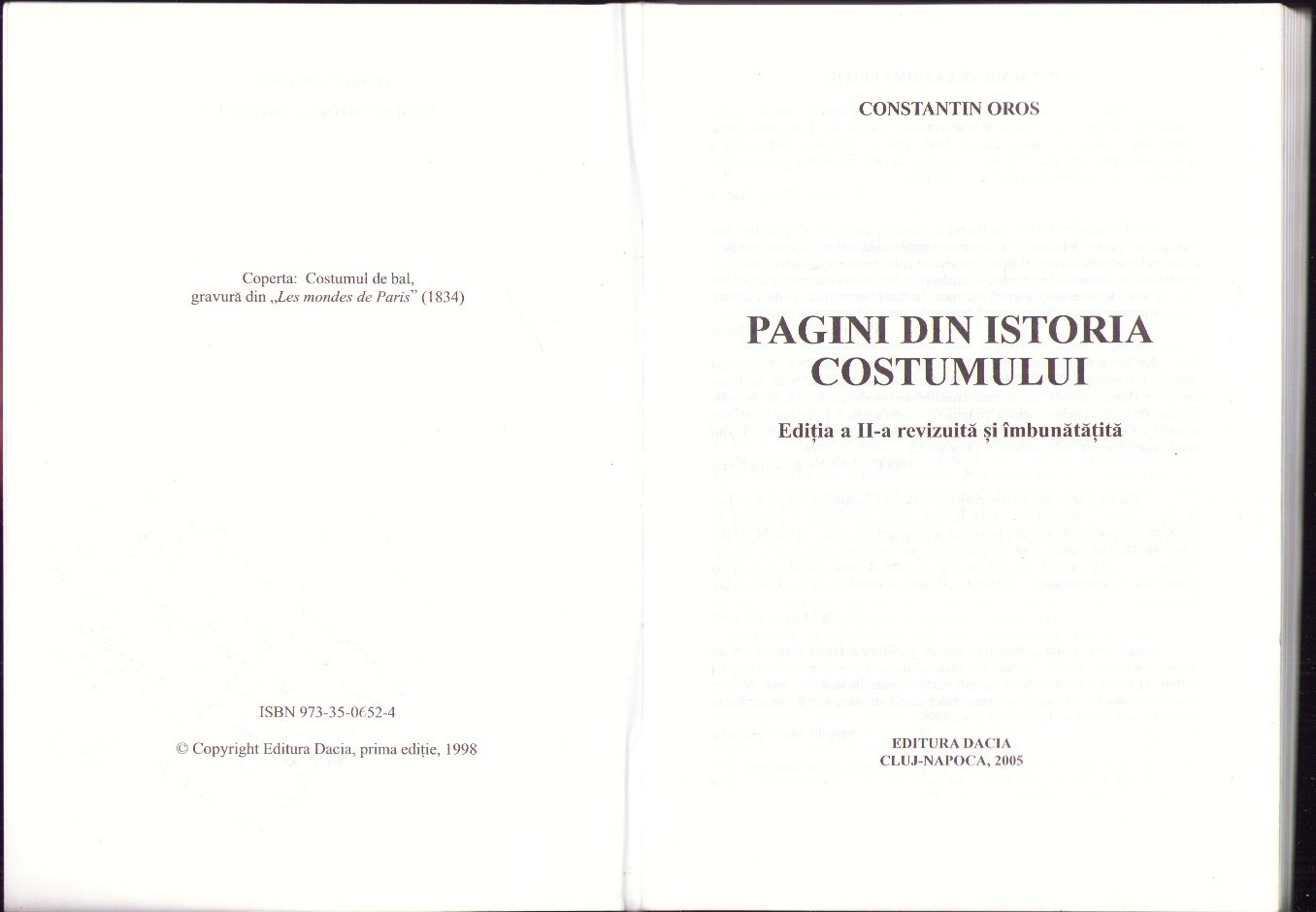 Pagini din istoria costumului de Constantin Oros, 2005, Cluj-Napoca.