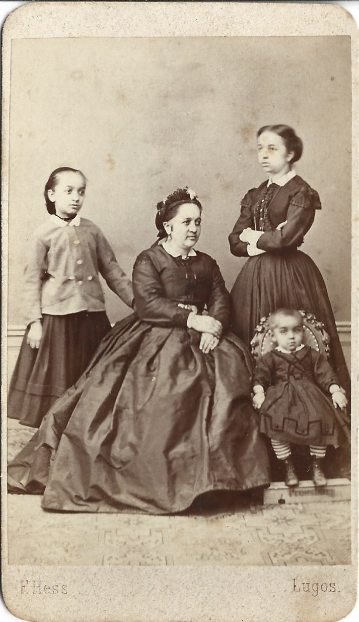 Paulina Rădulescu născută Seiman cu fetele Sofia, Cornelia și Elena, studio Fridolin Hess, Lugoj.
