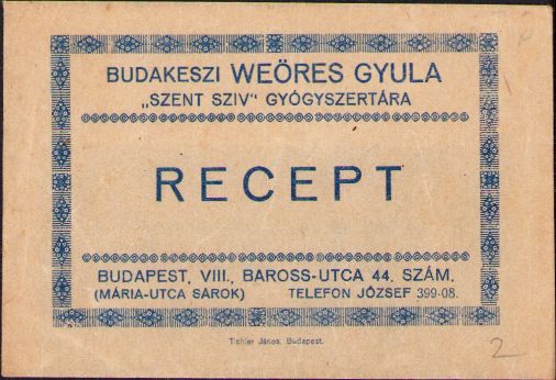 Plic și rețetă cu ștampilă, 1928, farmacia Szent Sziv Budakeszi, Budapest.