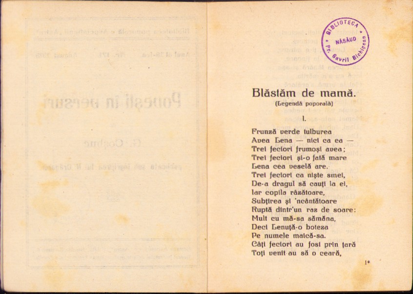 Povești în versuri de George Coșbuc publicate sub îngrijirea lui N Drăganu, 1929, Biblioteca poporală a Asociațiunii