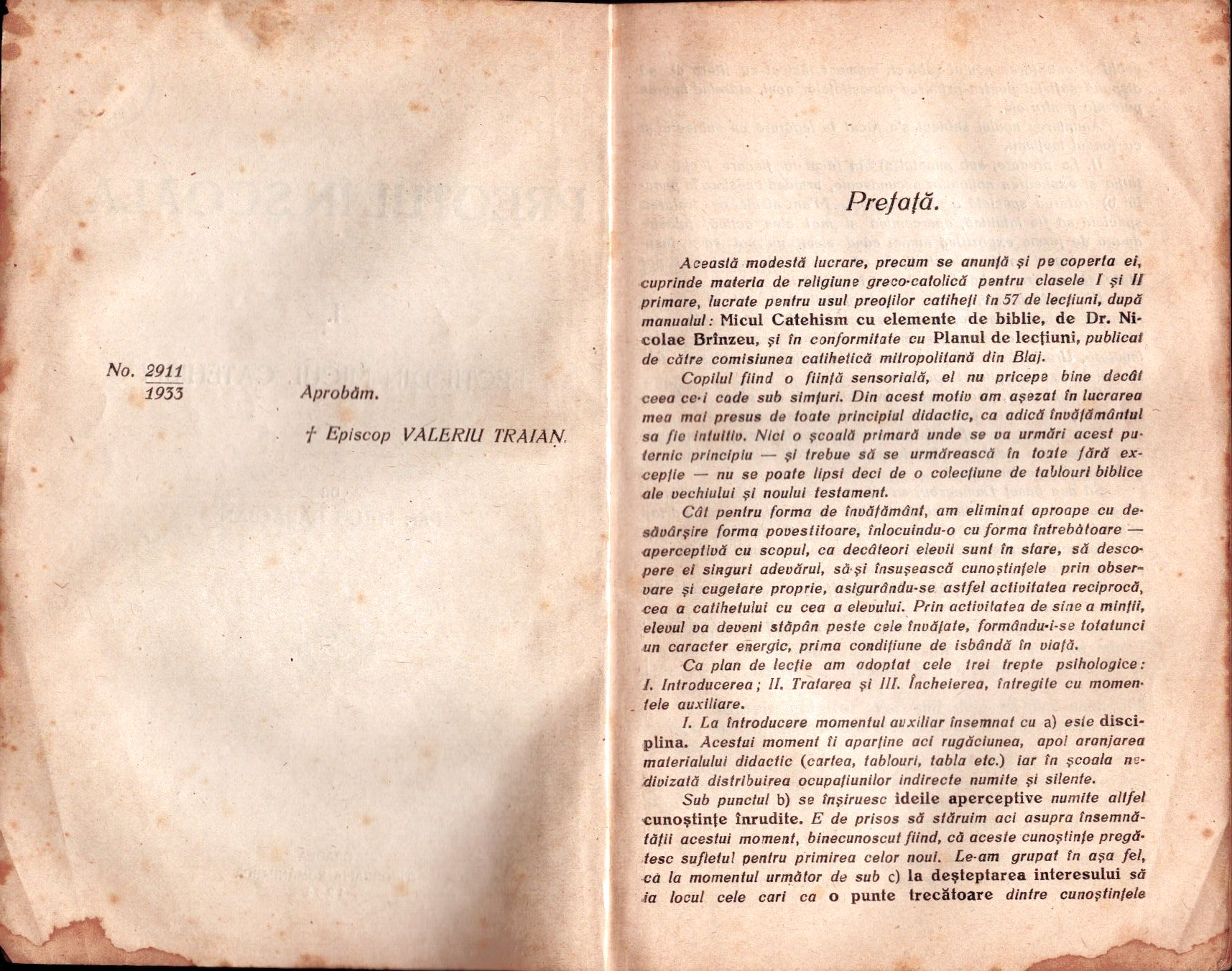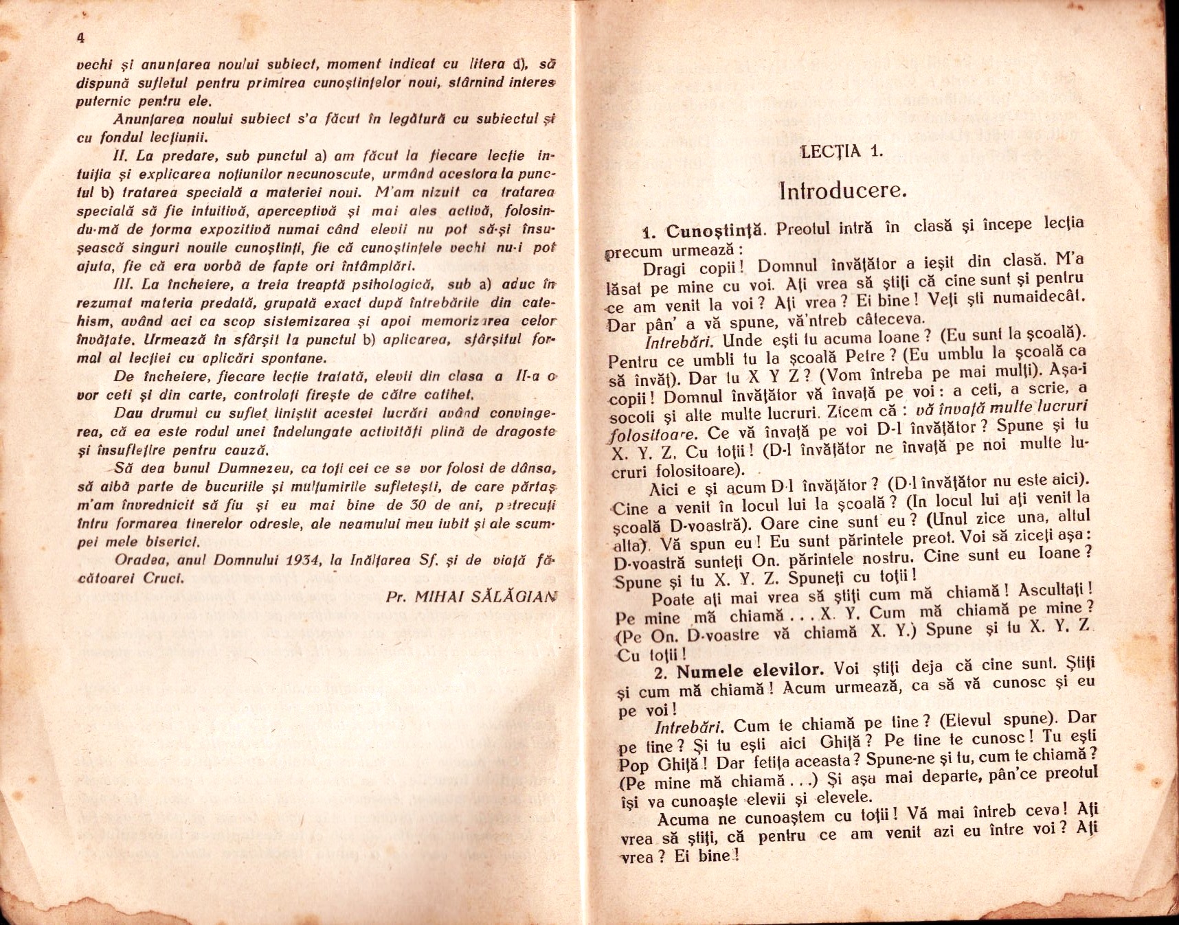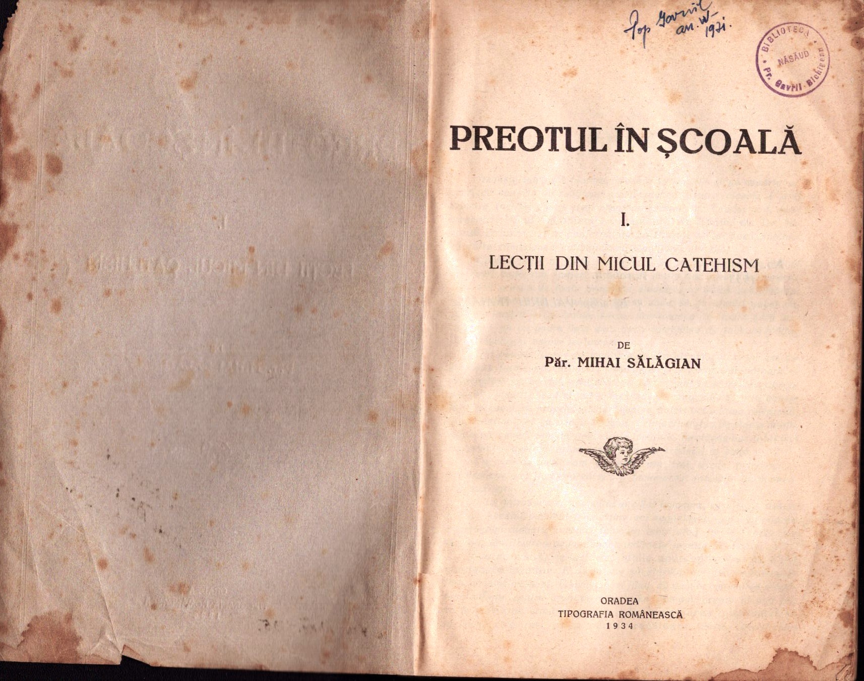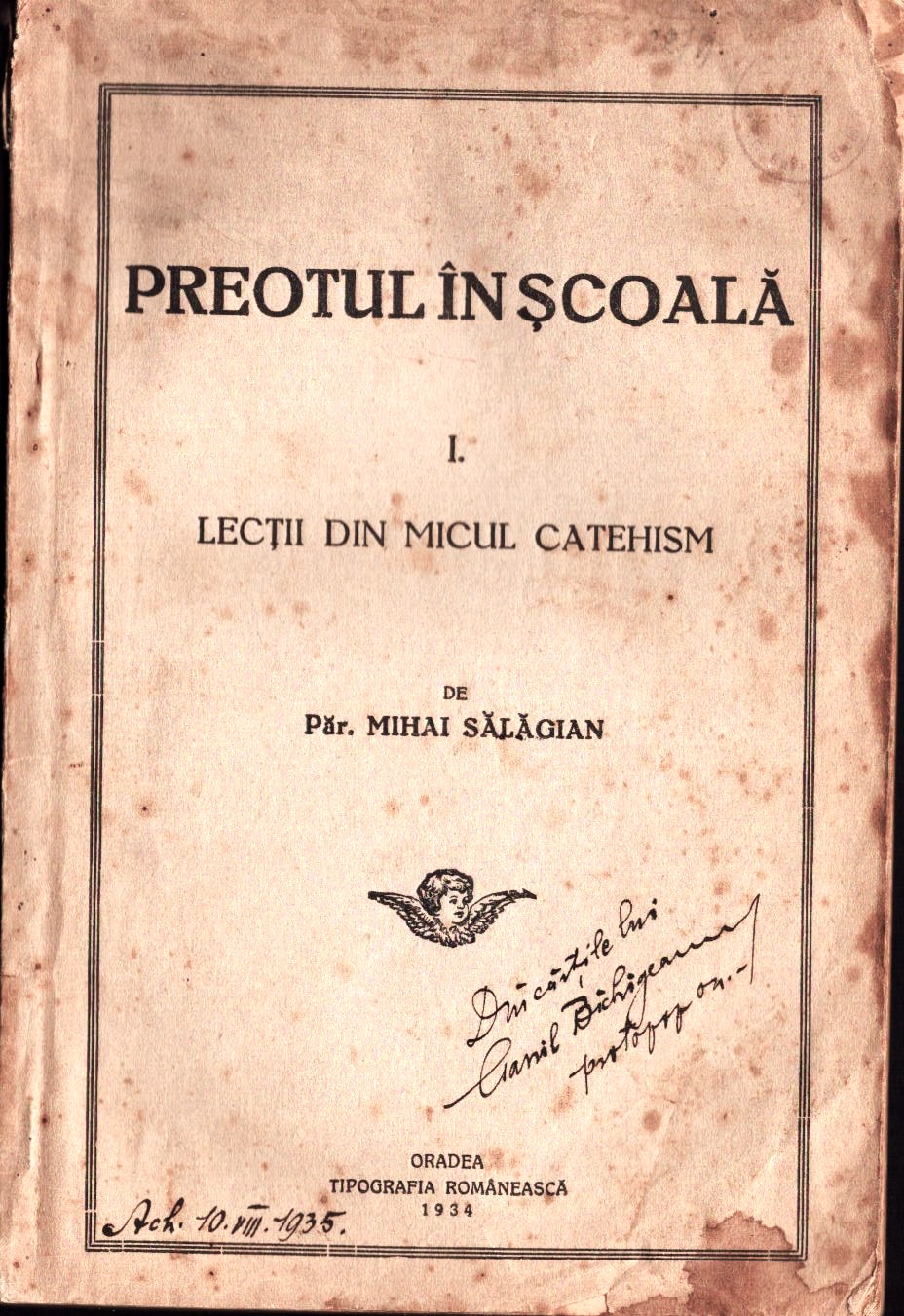 Preotul în școală, Lecții din micul catehism de preot Mihai Sălăgean, Oradea, 1934, greco-catolică.
