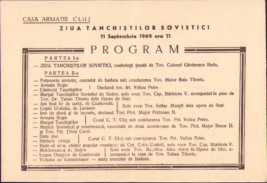 Program Ziua tanchiștilor sovietici, 1949, Casa Armatei Cluj.
