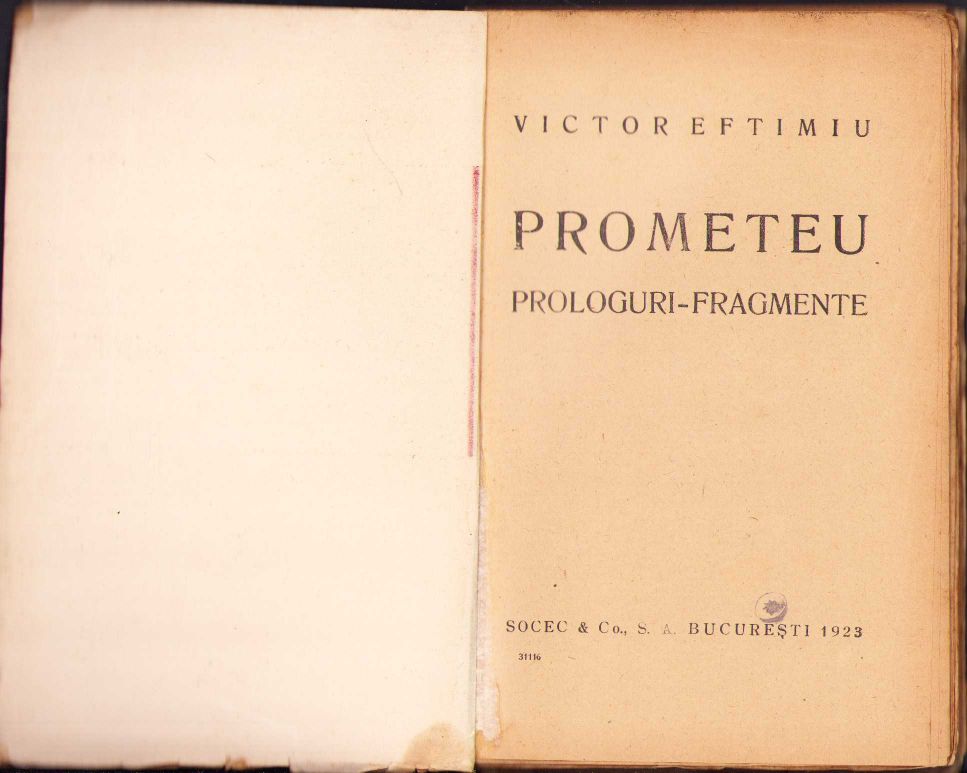 Prometeu, prologuri, fragmente de Victor Eftimiu, 1923.