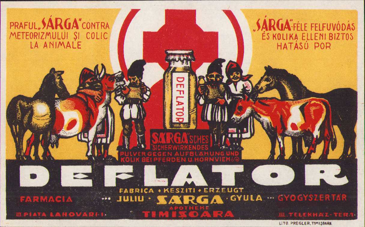 Reclamă medicament Farmacia Sarga Gyula, Timișoara, anii 1930.