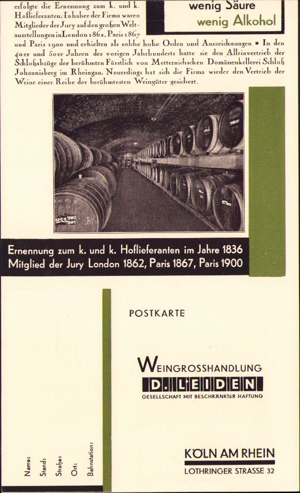 Reclamă vinuri, Germania, 1923