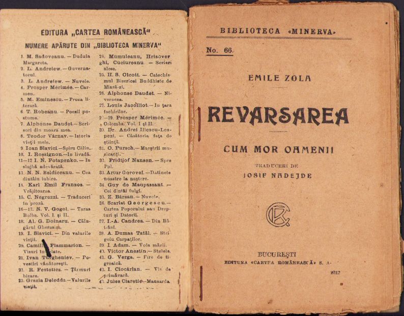Revărsarea, Cum mor oamenii de Emile Zola, Biblioteca Minerva.