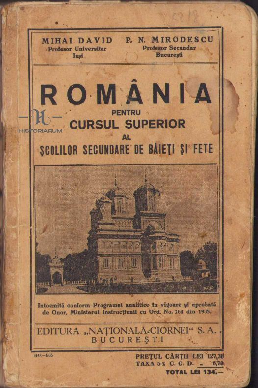 România pentru cursul superior al școlilor secundare de băieți și fete de M. David și P. N. Mirodescu, 1935, Editura „Naționala Ciornei”, București